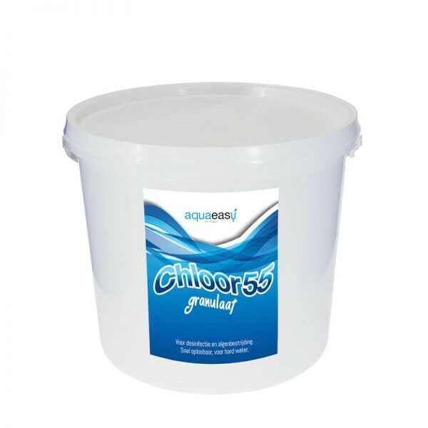 Chloor 55% granulaat is bedoeld voor hard water. Het chloor moet met water gemengd worden in een emmer, goed verspreiden over het zwembad zodat het dan goed mengt met het zwembadwater. Het chloor is verpakt in een pot van 5 kg en makkelijk in gebruik. Chloor is er voor om uw zwembadwater fris en helder te houden