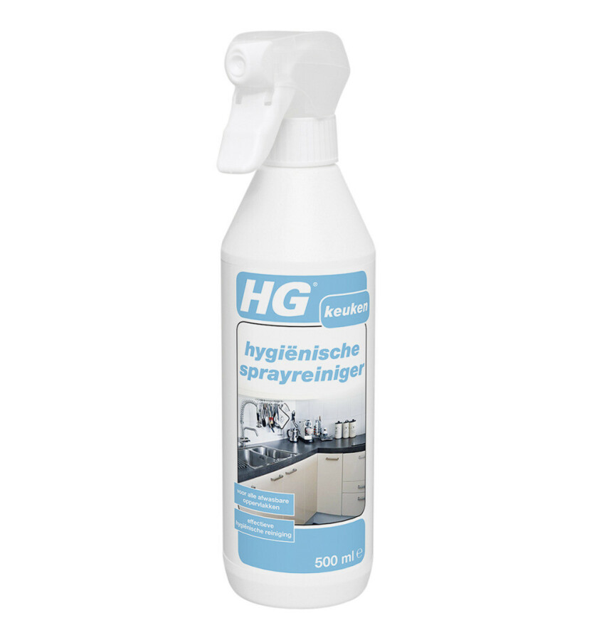 HG hygiënische sprayreiniger is bij uitstek het product om snel en veilig allerlei afwasbare oppervlakken in de keuken, toilet en badkamer effectief te reinigen. In de keuken, het toilet en badkamer blijft vaak onzichtbaar vuil achter als gevolg van voedselresten of andere vervuiling en kan hiermee eenvoudig verwijderd worden.