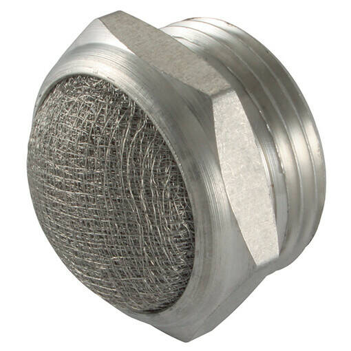 Professionele geluiddemping voorkomt dat de hoge tonen die perslucht veroorzaakt schade kan aanrichten. Inschroefdemper - RVS 304 huis en RVS 316 demping