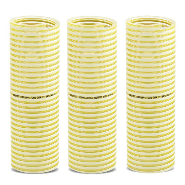 PVC zuigslang met harde PVC spiraal, geschikt voor vacuum en transport van vloeibare levensmiddelen.