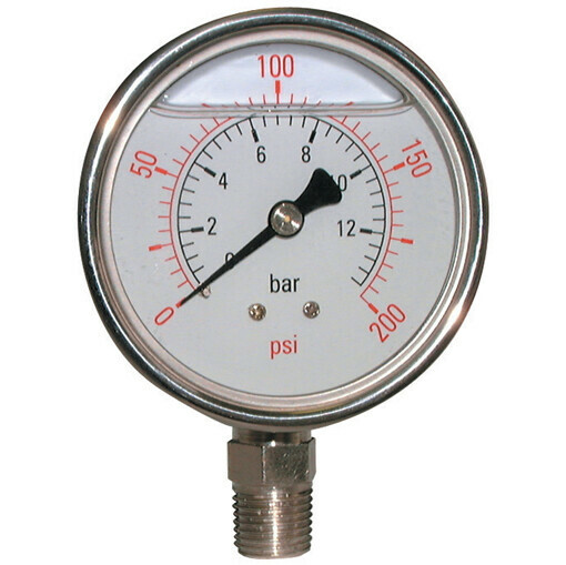 Manometer K63 1/4" OA 0-12 bar RVS Glyc.