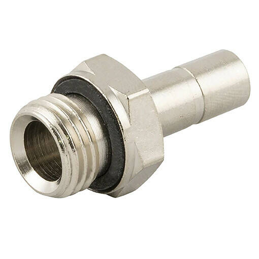 Push-in koppelingen geschikt voor perslucht en vacuumtechniek. Messing vernikkeld met kunststof ontkoppelring. NBR seal.