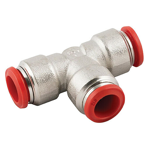 Push-in koppelingen geschikt voor perslucht en vacuumtechniek. Messing vernikkeld met kunststof ontkoppelring. NBR seal.