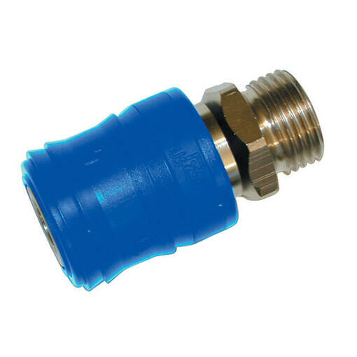 Voorzien van dubbele ontgrendeling. Bij de eerste ontkoppellling wordt de slang ontlucht en blijft de insteeknippel in de koppeling. De tweede ontkoppeling zal de insteeknippel vrijgeven. Euro profiel - BSP male. Toepassing: persluchtgereedschap, compressoren, bout- en industrie.